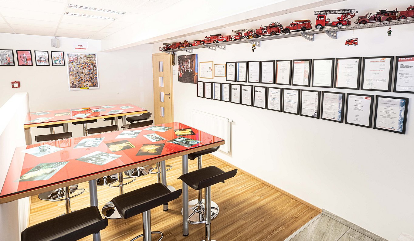 Unser Seminarzentrum bietet alles, was für eine erfolgreiche Aus- oder Weiterbildung notwendig ist. Der helle Raum ist mit zahlreichen Beispielen technischer Brandschutzeinrichtungen ausgestattet, anhand welcher die theoretische Ausbildung unterstützt wird.
