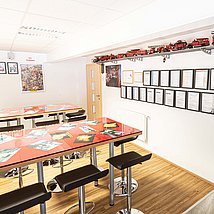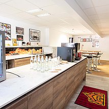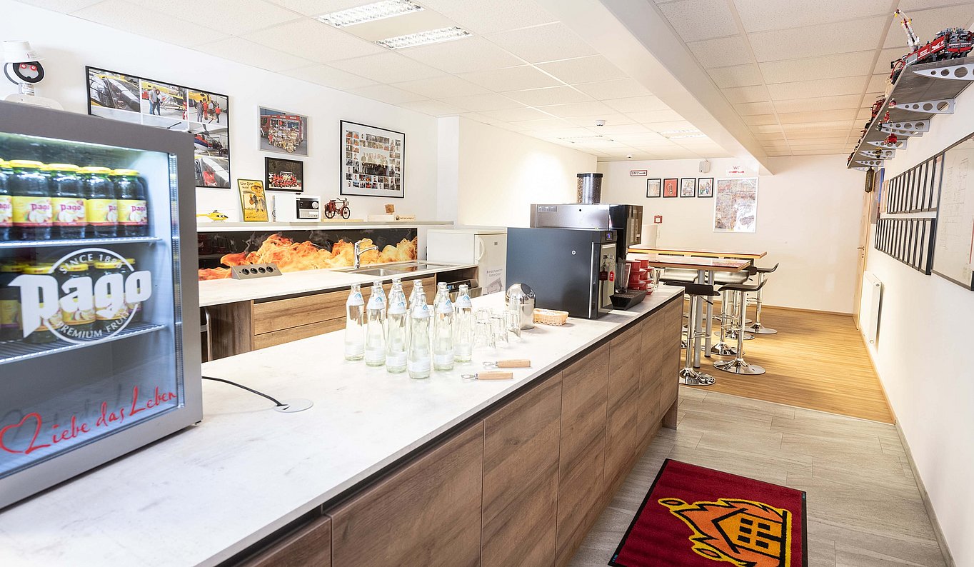Im angrenzenden Aufenthaltsraum mit Bar können sich KursteilnehmerInnen in den Pausen stärken.